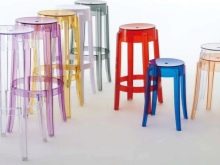 Barevné stoličky mohou být matné, lesklé a průsvitné. Ta bude zase vypadat dobře nejen v kuchyni, ale také v obývacím pokoji.
