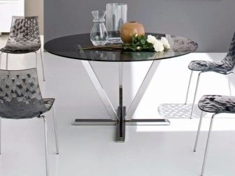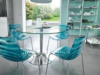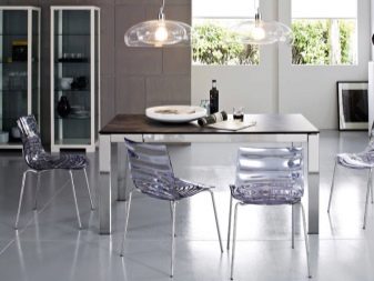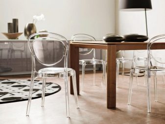 Pokud barevný plast není podle vašeho vkusu, doporučuje se věnovat pozornost průhledným stolům a židlím. Tato možnost vypadá zároveň skromně a stylově. Nábytek lze umístit do velkého obývacího pokoje i do malé kuchyně. Transparentní plast lomí paprsky a současně splní svůj hlavní účel.