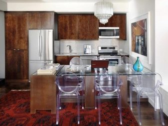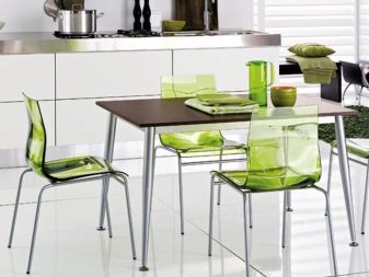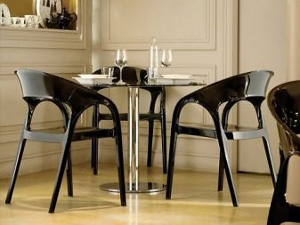 Neméně populární jsou malé stoly pro děti, u kterých můžete své dítě pohodlně umístit a nábytek nezabere mnoho místa. Výrobci vyrábějí plastové židle v různých konstrukčních řešeních: může to být přísná přímka nebo zakřivené kudrnaté záda. Takové produkty mohou každého návštěvníka překvapit.