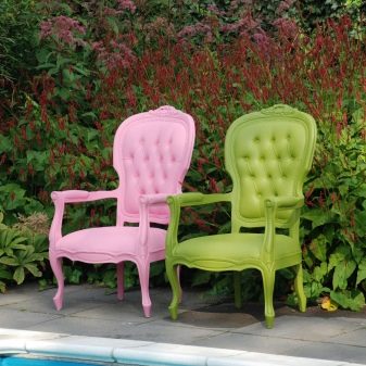 V moderním světě jsou nejoblíbenější výrobky ze dřeva a kovu.Mnoho designérů však doporučuje zvolit plastové židle a stoly. Plast je velmi praktický a nevyžaduje zvláštní péči.