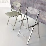 Vzrušeně hledejte mezi zrcadlovým, kovovým, skleněným a koženým nábytkem. Použití ve velkém stylu hi-tech. Jedinou nevýhodou skládacích židlí na kovovém rámu je posuv kovových nohou na podlaze a jejich poškození. Abyste se tomuto problému vyhnuli, používejte plastové, silikonové nebo gumové uzávěry, které se připevňují k nohám.
