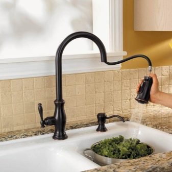Černá barva byla vždy ukazatelem luxusu, bohatství a jemné chuti. To platí nejen pro stěny, podlahy nebo textilie, ale také pro faucety. Takové výrobky jsou okamžitě viditelné v kuchyni, harmonicky doplňují mnoho stylů. Tyto jeřáby jsou navíc neobvyklé a ne každý je má, což se stává dalším plusem.