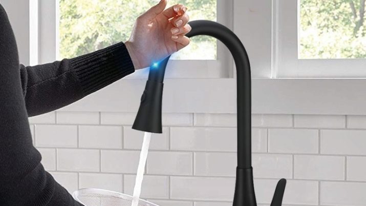 - Bezkontaktní. Tyto výrobky jsou vybaveny infračervenými senzory, které jsou naprogramovány tak, aby se spouštěly v případě pohybu, to znamená, že budete muset přivést ruce k vodovodnímu kohoutku, abyste je mohli zapnout.