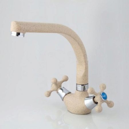 - Klasický faucet se dvěma kohoutky. Tento model je vhodný pro ty, kteří nemají rádi experimenty a jsou zvyklí na tradiční produkty. Teplota vody a její tlak lze regulovat pomocí dvou kohoutků. Tento model se liší od obvyklých u jeřábů - pokud dříve to byly běžné ventily, pak je tento model vybaven nápravovými skříněmi, z nichž každý lze otáčet pouze o půl otáčky.