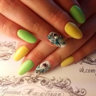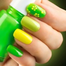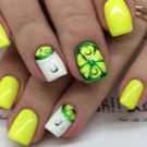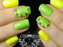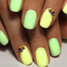 Žluto-zelená manikúra ponechává hodně prostoru pro kreativitu. Můžete si vybrat laky v pastelových nebo velmi jasných a nasycených barvách. Proto takové barvy na zakrytí nehtů budou vyhovovat každé ženě, hlavní věcí je dobře promyslet design.