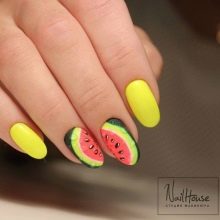 - Melouny vodní Ano, existují žluté melouny, které se v moderním světě nesetkáte. A když se objevili, okamžitě je začali zobrazovat na nehtech. Meloun slupka, jak víte, jasně zelená.