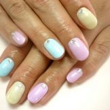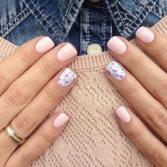 Toto je cenově dostupná volba pro začátečníky v nehtovém průmyslu. Taková manikúra dává svému majiteli dobrou náladu a nadšení. A díky jemným odstínům vám umožní zůstat romantickým způsobem.