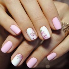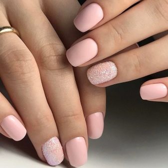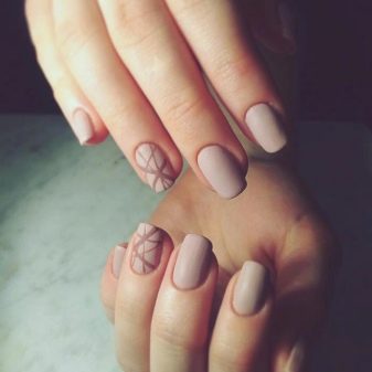 Moderní nehtový průmysl nabízí zcela matnou manikúru nebo důraz na několik nehtů. Taková manikúra dává extravaganci a originalitu každému obrazu. Jemná manikúra s několika matnými akcenty dodá charakteru a stylu. Vypadá to výhodně v každé situaci a na jakoukoli oslavu. Jemné odstíny laku mu dodají romantiku a tajemství. Tento povlak vypadá skvěle na krátkých nehtech.