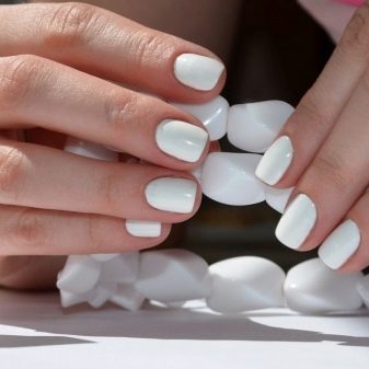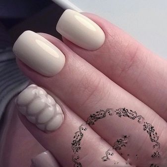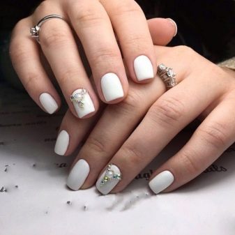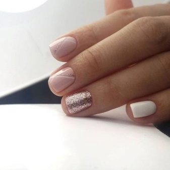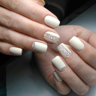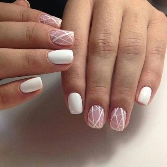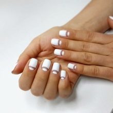V paletě jakéhokoli pána je pro takovou manikúru mnohem více nahých odstínů. Je důležité, aby byly stylově kombinovány. Perfektní základna pro jakýkoli design bude sloužit jako bílý odstín.