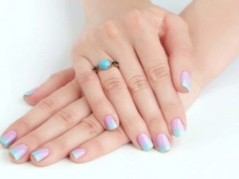 Tento typ designu lze provést klasickými nebo gelovými laky. Toto je speciální technika pro aplikaci barevného povlaku s jemným přechodem z jedné barvy do druhé. V nehtovém průmyslu se objevil poměrně nedávno, ale stal se velmi populární a oblíbený.