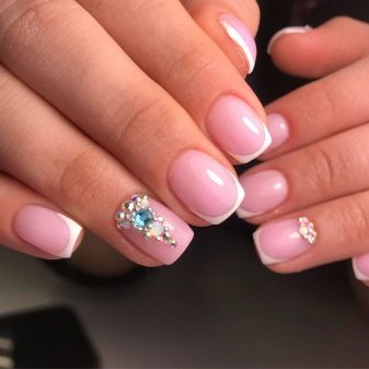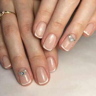 Jemná manikúra je praktickým a univerzálním řešením pro mnoho žen. Kamínky a korálky vám pomohou přidat nádech rozmanitosti tím, že nehty budou slavenější. Pro jemnou manikúru samozřejmě stojí za to vybrat si světlé a průsvitné odstíny oblázků, jinak se objeví honosný a trapný obraz. Tento design je vhodný pro svatbu nebo ples.