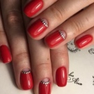 - Položili jsme šablonu na oblast kutikuly. Z jeho vnější hrany zakrýváme hřebík červeným lakem. Důkladně osušte a naneste druhou vrstvu.
