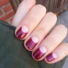 Reverzní díry (často nazývané reverzní bunda) zdůrazňují celý vnitřní povrch nehtové desky. V této kontrastní kombinaci se rozlišuje nejen zóna na základně hřebu, ale podél bočních stěn procházejí rovné linie. Čím ostřejší kontrast, tím lépe tato manikúra vypadá. Oblíbené ročníky jsou kovové odstíny. Dvojité lunuly se objevily teprve nedávno. Vytvářejí zvláštní důraz. Obvykle se provádějí v jedné barvě. První díra je na obvyklém místě. A druhý je vytvořen ve formě oblouku ve vzdálenosti 2-3 mm od něj a je obvykle tenčí.