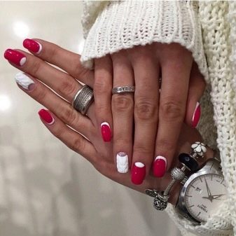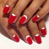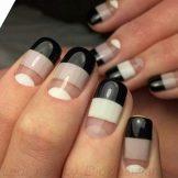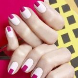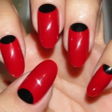 Když hrajete v kontrastu, nikdy nebudete poraženým. Pokud nemáte vůbec čas, vezměte si dvě nádherné klasické barvy: červená a bílá, černá a bílá nebo černá s červenou. Tato kombinace je velmi stylová. Chcete-li vytvořit módní design, můžete použít jeden lak a nechat lunulu bez nátěru. Tento design byl úspěšný několik sezón. A dívky, které to říkají, říkají, že nehtová deska dýchá lépe a nehty rostou rychleji.