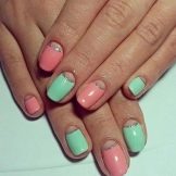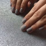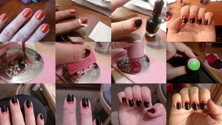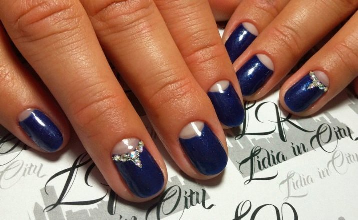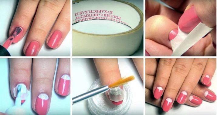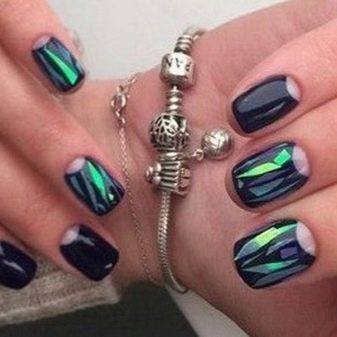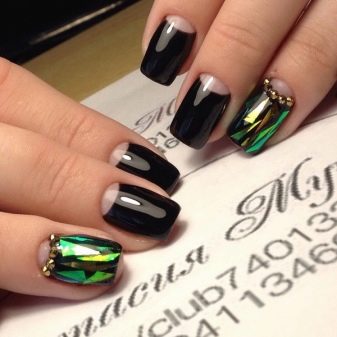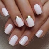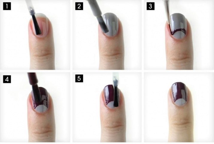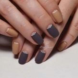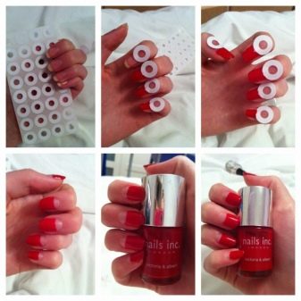 Otvor nemusí být nutně čistý, ale stylizovaný. To lze provést přilepením jednoho nebo dvou speciálních metalizovaných proužků pro manikúru. Děje se také ve formě rozmazaného, nejsvětlejšího nebo nejtmavšího tónu v ombre manikuře s hladkými přechody.