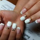 Možnost, kterou navrhl Dior, je druhem klasické manikúry měsíce. Jedná se o bílé díry v jednom z odstínů červené. Tradiční možností je také použití přírodních odstínů, které se používají k vytvoření bundy. Bílé nebo mléčné otvory jsou kombinovány s broskvovým, růžovým, světle béžovým a krémovým pozadím. Nejčastěji je výběr děr kombinován s francouzskou verzí nebo monochromatickým povlakem. Vypadá stejně atraktivní jak s lesklým, tak s matným povrchem, který byl v posledních letech populární.