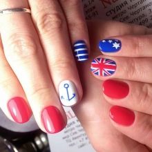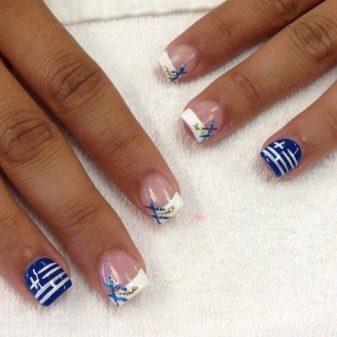 Zvláště chci zdůraznit možnost manikúry ve formě řecké vlajky. Tato módní modrá a bílá kombinace odstínů pastelových barev. Celá plocha je střídáním bílých a modrých pruhů s bílým křížem v levém horním rohu.