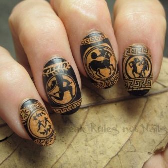 Vzorek s posledně jmenovanými může být „podporován“ obrazy několika hadů na sousedních nehtech. Nezapomeňte na Pegasuse a Sfingu.