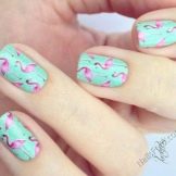 - krásná a šťavnatá manikúra s plameňáky zdobenými kamínky.