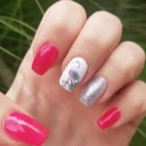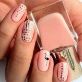 - dobrý příklad malého plameňáka na nehtech střední délky;