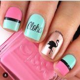 Plameňáky můžete „zasadit“ na přízvučné nehty manikúry různými způsoby.