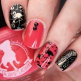 - Lisování - To není nic, jako vyražit vzor z přeložené kovové desky. Rytý vzor lze podle potřeby malovat jako techniku vitráže, která vám umožní získat barevný obrázek plameňáka s kontrastním obrysovým tahem. Lisování je dobré, protože linie takového vzoru po nanesení z válce na nehty samotné jsou hladké a přesné. Celá procedura trvá velmi málo času, což se líbí fanouškům tohoto designu nehtů.