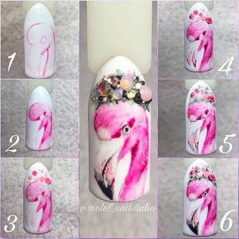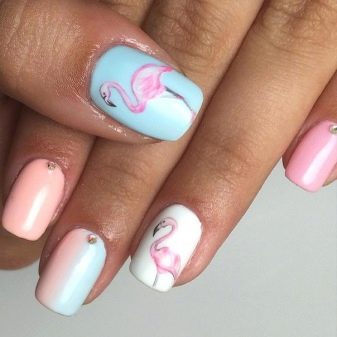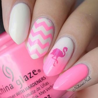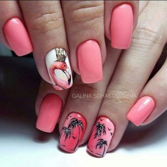 Letní design moderní manikúry často překvapuje tématem dekorace. Někdy se na nehtech objevují kromě tradičních řešení nejen barevný hmyz, ale také exotičtí ptáci. Jednou z nejoblíbenějších možností navrhování nehtů s diakritikou v dnešní době je design s plameňáky.