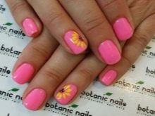 Každá žena chce být nejoriginálnější a nejkrásnější i v takových detailech stylu, jako je manikúra. Proto může bezpečně experimentovat s květinami, technikou nanášení laku, gelu, šelaku a dalších materiálů. Vypadá to zajímavě růžová manikúra se slunečnicovými květy na jednotlivých nehtech. Na jedné straně stačí dvě světlé květiny, se kterými můžete zdůraznit prvky ve žlutém oblečení.