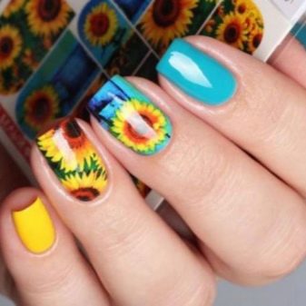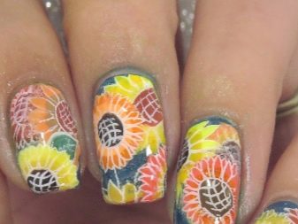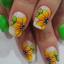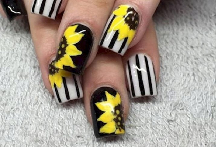Žlutá barva sama o sobě nese energii léta, radosti, relaxace. Slunečnice dokonce vypadají jako slunce a jejich ztělesnění na nehtech v krásné manikúru vždy zapadá do letního vzhledu. Neilští mistři používají různé techniky pro aplikaci prvků na nehty, s nimiž může manikúra ožít, zažít nebo proměnit v etnický vzorec.