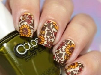 - stejný vzor, aplikovaný na pozadí jiné barvy, mění obecné vnímání; žluté slunečnice na růžovém nebo modrém pozadí s kontrastem dávají manikúru a jejímu majiteli jistou chuť;