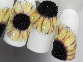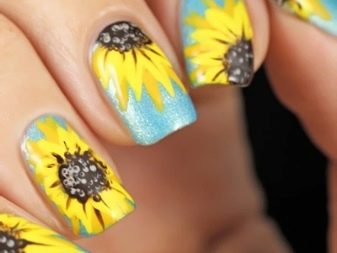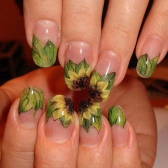 Chcete-li vymyslet svůj vlastní design nebo si vybrat z řady příkladů z online zdrojů, je výběr individuální. V každém případě byste se měli zaměřit na následující pravidla pro manikúru se slunečnicemi: