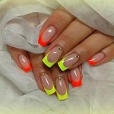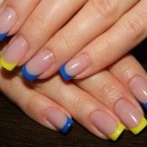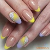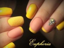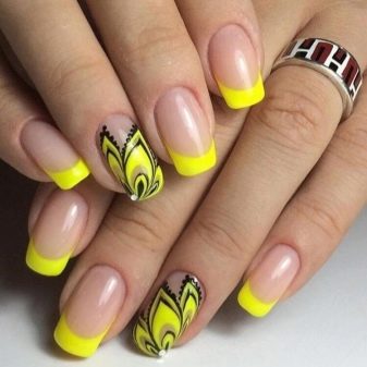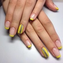 Mimochodem, je zcela dobrovolné provádět žlutou francouzskou manikúru na všech nehtech. Již dlouho je obvyklé pokrývat jeden nebo více hřebů plnou barvou nebo aplikovat chytlavé kontrastní vzory. Není nutné, nebo dokonce nežádoucí, připoutat se k určité symetrii.