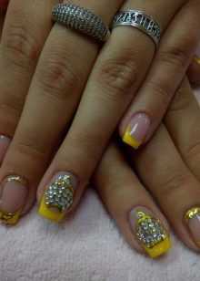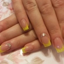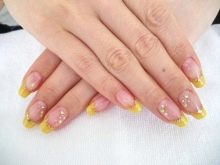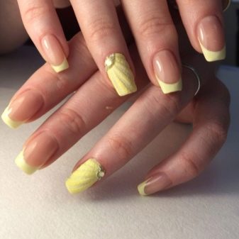 Dokonce i nejjednodušší a nejjednodušší design nehtů může být vyroben speciálně a jedinečně, což zdůrazňuje jeho sofistikovanost a eleganci. Výrobci nabízejí naši pozornost mnoha druhům šperků, s nímž můžete vytvořit neuvěřitelně krásný a jedinečný nehtový design na základě francouzské žluté manikúry.