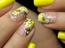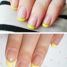 - Příliš dlouhé nehty už dávno zmizely z módy a navíc „rozdávaly“ vulgárnost. Je lepší zvolit krátké tipy. Nebojte se, že taková manikúra bude ztracena a bez povšimnutí - zářivě žlutá barva dodá všechny potřebné přízvuky a zaujme náležitou pozornost.