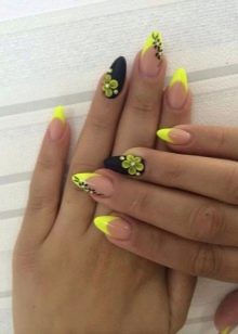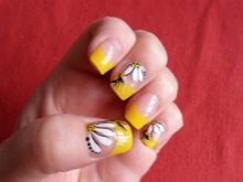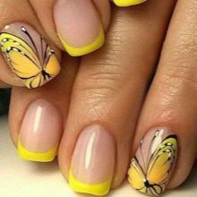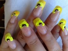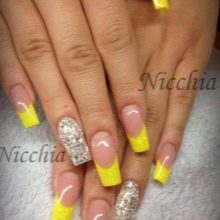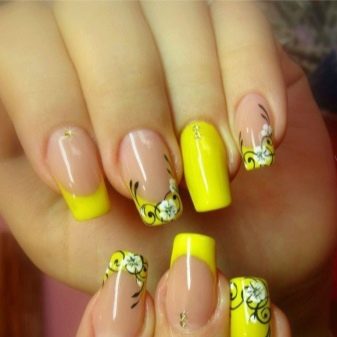 Přes svou zjevnou jednoduchost může být francouzská manikúra a dokonce i žlutá skutečným nálezem. Mýlíte se, pokud si myslíte, že Francouzi jsou nudní a monotónní. Zkušený řemeslník je schopen vytvořit originální a jedinečný design nehtů, který kombinuje různé odstíny žluté, pomocí zajímavých tisků, doplňuje zářivě žlutý design se všemi druhy ozdob a ozdobných vzorů.