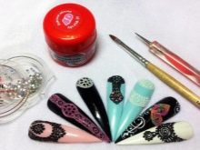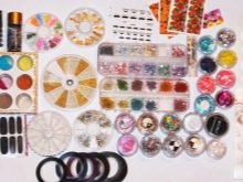 - Dekorační prvky. Moderní rozmanitost a dostupnost šperků pro nehtový design vám umožní vytvářet zajímavé a jedinečné obrázky na nehtech. Chcete-li vytvořit květiny, můžete použít kamínky různých velikostí, vývary, flitry a dokonce i štukování.