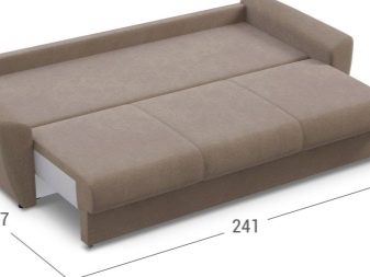 - Velikost lůžka. Vzhledem k tomu, že tento model sedací soupravy je vybaven jedinečným sklopným systémem, který vám umožňuje uspořádat lůžko, je třeba znát jeho rozměry, když se rozkládají. Aby byl pohodlný spánek, měla by být struktura o 30 cm větší než výška osoby a šířka by měla být od 140 cm.