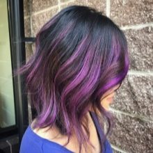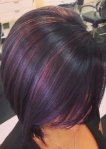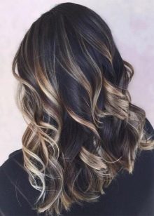 U černých vlasů lze v práci použít odstíny mědi nebo kávy a se speciální dovedností můžete dosáhnout zvýraznění studenou blond. Jako mimořádné zbarvení se uchýlil k přeměně černých vlasů s modrými nebo lilkovými prameny.