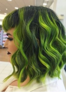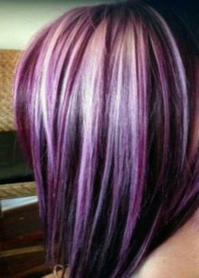 Tato možnost bude velmi výhodná z hlediska následné korekce barev, protože zahrnutí tmavých barev pomůže v budoucnu skrýt rostoucí kořeny. Pro stylové a mladistvé obrázky se světlými kadeři se používají takové mimořádné inkluze, jako je zelený, lilek nebo fuchsie.
