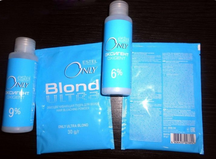 U křehkých a tenkých chloupků stojí za to koupit 1,5% oxidu. Pokud jde o světlé prameny, jejich barvu lze změnit pomocí 3% složení a na tmavých vlasech se u 6% nebo 9% oxidu dosáhne požadovaného výsledku. V prodeji je také agresivnější bělidlo - 12% kyslík, ale nedoporučuje se pro nezávislé použití, protože s nejmenší chybou v proporcích nebo době kontaktu s vlasovými tyčemi může chemie způsobit vážné poškození vlasů. Mezi produkty používané k odstraňování pigmentu patří také blondoranové přípravky, které vyrábějí různí výrobci barviv na vlasy.