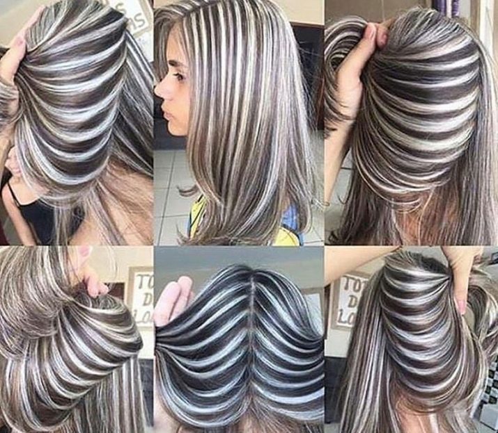 Můžete se zvýraznit i na přírodních šedivých vlasech. V této záležitosti je však velmi důležité distribuovat složení barviva a prameny co možná nejrovnoměrněji v celkovém objemu tak, aby částečné zabarvení vypadalo harmonicky. Správně zvýrazněte takovou vlasovou hlavu, která se doporučuje sama v následujících možnostech: