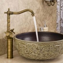 - Míchačky vyrobené z této slitiny vypadají velmi drahé a neobvyklé. Často mají bizarní tvary a velikosti, okamžitě se stanou ozdobou celé místnosti.