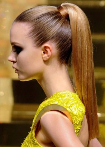 Nyní jsou vlasy shromážděné v ocasu bezpodmínečný trend. Pokud jste mladí, klidně udělejte ocas. Pokud nejste mladí, udělejte to také, ale vyvarujte se souběžné hromady, která zvyšuje věk.