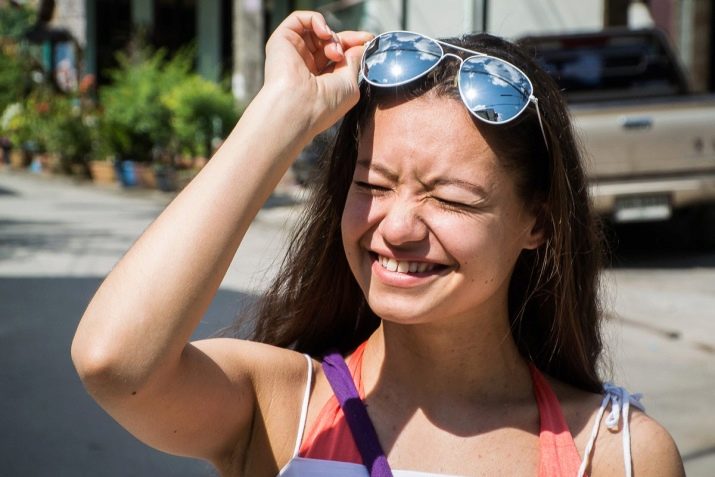 Existují dámy, které kategoricky nemají rádi sluneční brýle. Ale marně. Bez nich se na slunci nedobrovolně škubnete. A pak se stane totéž, jako po trubkách slámy. Svaly jsou pevné, kolagenová vlákna jsou zkrácena, objeví se svislé i vodorovné vrásky.