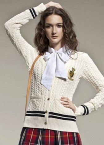 Posledním akordem mohou být kostkované kalhoty nebo sukně. Je to pohodlné, stylové, pohodlné. Polina zdůraznila, že tato „preppy“ varianta je vhodná pro důležité setkání, pro účast na lekcích na univerzitě a pro procházku. Můžete se oblékat takhle na rande, ale pro romantickou atmosféru stojí za zvážení pěkné drobné doplňky ve výbavě, například můžete ozdobit svetr s malou květinovou broží.