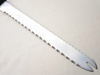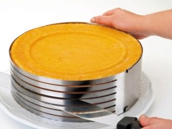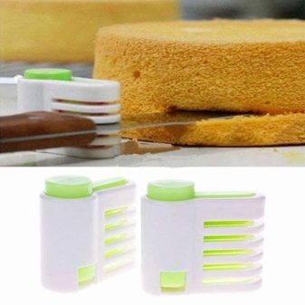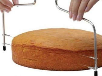 - speciální nůž pro řezání sušenky s dlouhou vroubkovanou nebo oboustrannou čepelí; pro pohodlí se nůž používá spolu s plastovými podpěrami, což vám umožňuje zvolit požadovanou výšku pro budoucí dort;