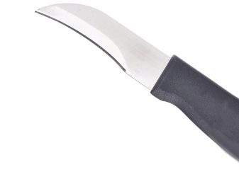- Pro čisticí prostředky. Tento produkt se liší od svých protějšků v kuchyni pomocí speciální konkávní čepele. To je nezbytné pro pohodlnější práci s kulatou zeleninou nebo ovocem. S ostrou špičkou je velmi výhodné odříznout zbytečné části produktu, například „oči“ u brambor.