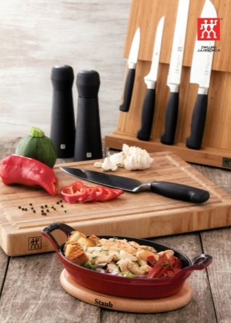 - Unikátní design. Konstrukce řezacích nástrojů je co nejjednodušší a výstižná, tyto výrobky úspěšně doplní interiér moderní kuchyně v moderním nebo klasickém stylu.