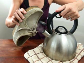 - Můžete napnout boty pomocí páry.Tato metoda je vhodná pro boty jakékoli sezóny. Chcete-li to provést, udržujte boty nad párou, dokud nejsou teplé a mírně navlhčené. Poté musíte do nich chodit několik hodin v tlustých ponožkách. Silné mokré boty by neměly být povoleny.