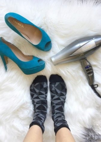- Další metodou špičky je natahování semiše teplem. Chcete-li to provést, musíte zahřát tlustou ponožku s fénem nebo žehličkou, obléknout si a boty, které jsou těsné, a chodit v bytě několik hodin.